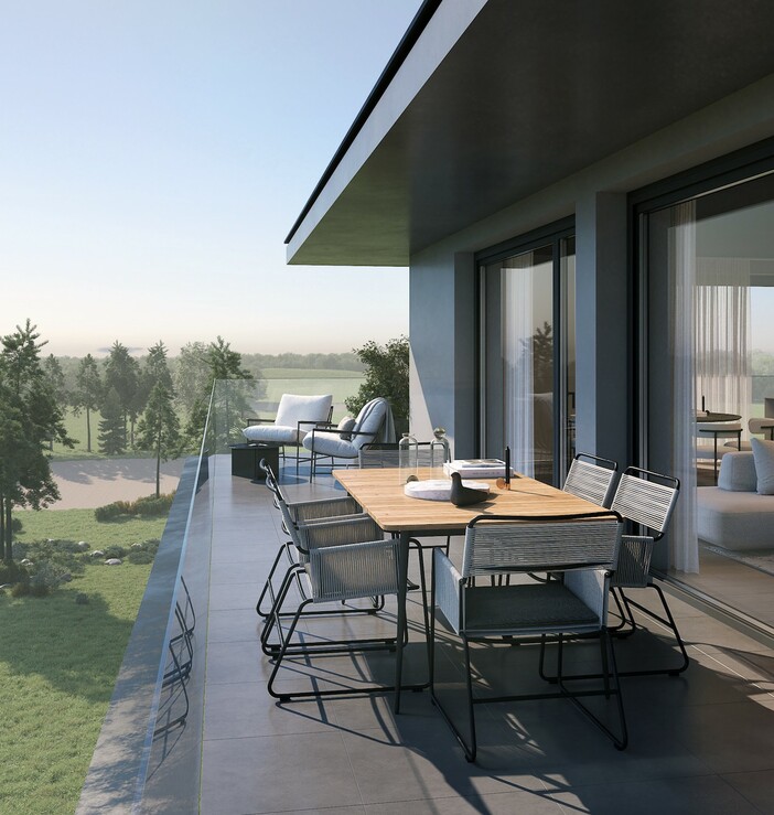 Součástí areálu je soukromá zahrada vhodná k relaxaci či letnímu grilování. K bytům přísluší za příplatek 61 garážových stání a 80 venkovních parkovacích míst, včetně nabíjecích stanic pro elektromobily.